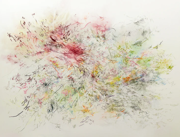 Jalena Hay’s practice centers on abstract drawing as a means of exploring lived experience and the ways perception is felt internally before it is named. Her works are built through layered surfaces that function like palimpsests, where each mark remains visible even as new ones accumulate. Nothing is fully erased; instead, the drawings hold their own history, allowing multiple temporal moments to coexist within a single field. Working without a predetermined plan, Hay allows each piece to unfold through embodied presence. Every gesture responds intuitively to the one before it, guided by repetition, pressure, and duration. Through this process, drawing becomes a form of thinking through the hand. The resulting compositions flicker between control and instability, reflecting memory as nonlinear and constantly shifting.